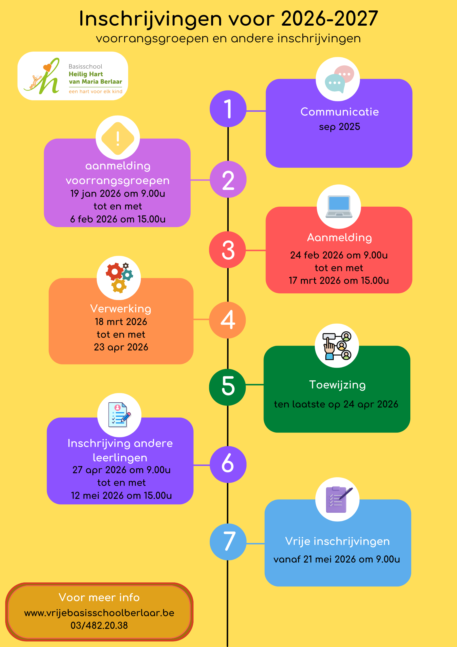 In onze school volgen wij een inschrijvingsprocedure waarbij we afspraken maken met enkele andere basisscholen van Berlaar.